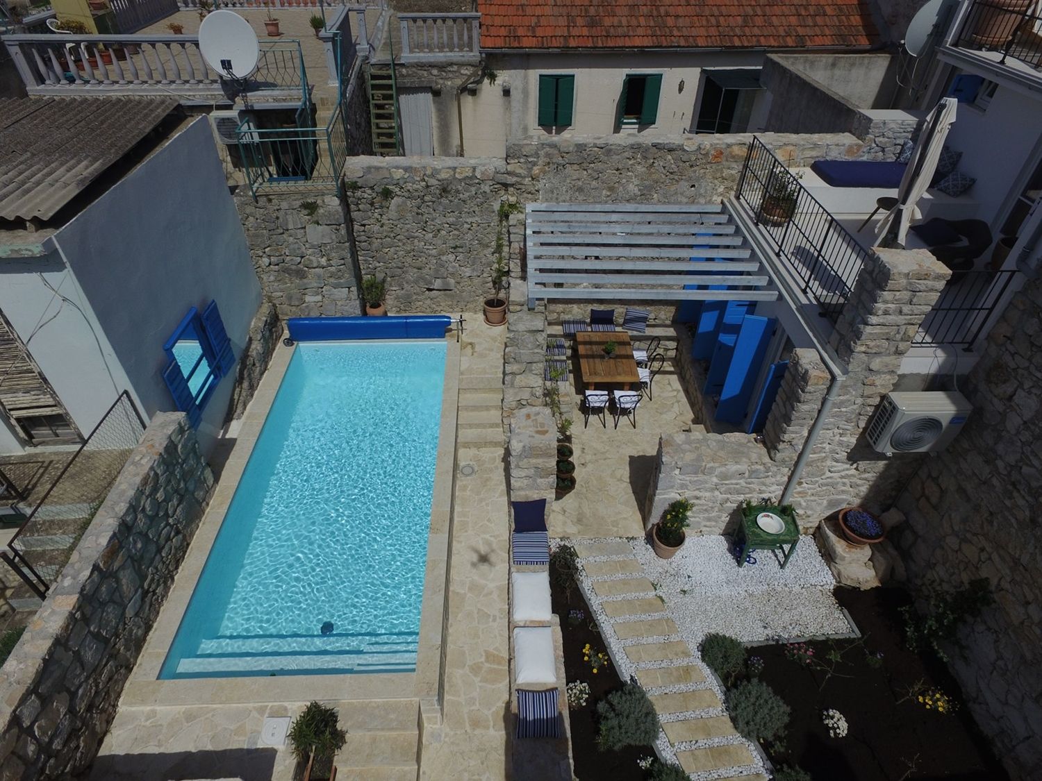 The house is from the 17th century. Renovated and decorated in traditional Dalmatian style. The courtyard of the house is completely surrounded by original stone walls and offers a private heated pool of 21m2 and an outdoor lounge with a barbecue for complete relaxation.