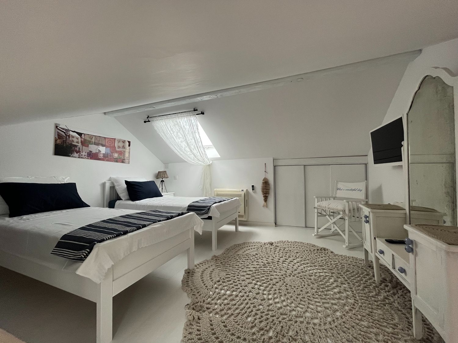 Guests have at their disposal two additional bathrooms with showers, a fully equipped kitchen and a living room with access to the yard.